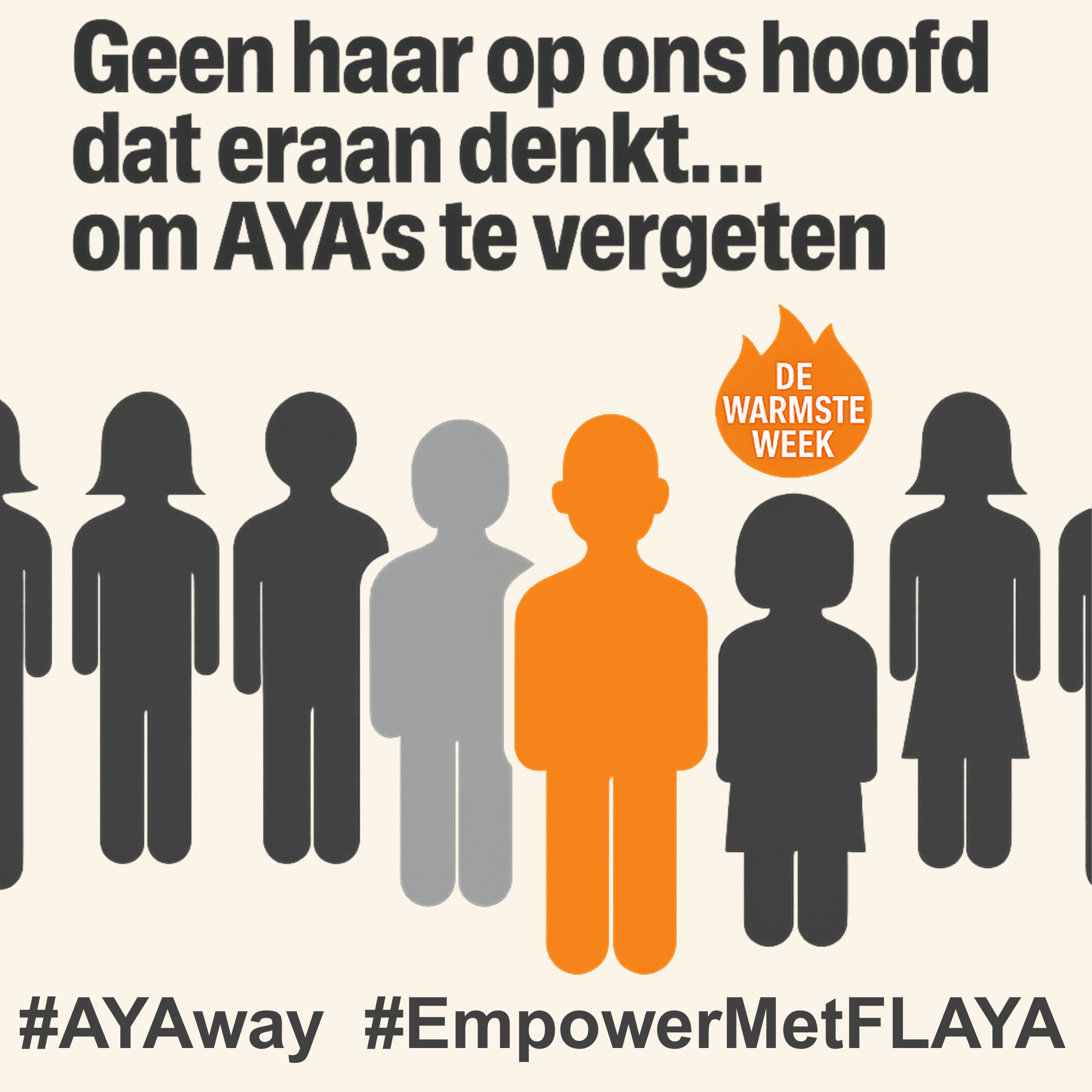 Jonge volwassenen met kanker blijven vaak onder de radar in onze zorg en maatschappij. Met AYAway willen we een eerste krachtige stap zetten in het zichtbaar maken van hun mentale noden en het doorbreken van taboes. Dit initiatief is de start van een beweging die ervoor zorgt dat de onzichtbare strijd van AYAs niet langer onbesproken blijft, maar dat ze kracht en erkenning vinden in een ondersteunende gemeenschap.