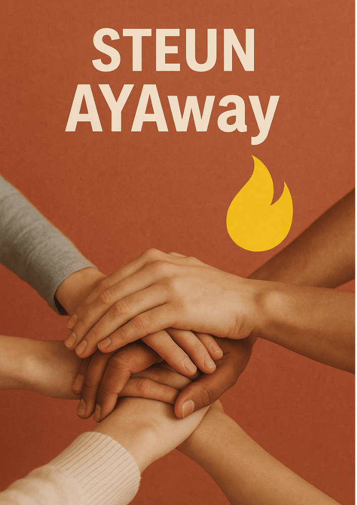 Samen kunnen we AYAway realiseren. Samen geven we jonge mensen de kracht, erkenning en verbinding die zij verdienen.